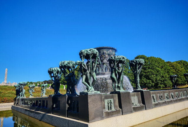 我们的挪威之行,首站便是其首都——奥斯陆。这座城市坐落在南部沿海峡湾的尽头,既有现代化都市的繁华,又藏着历史的温润。此行未穿城而过,而是从机场直奔维格兰公园。这公园又称“人生旅途公园”,得名于挪威雕塑大师古斯塔夫·维格兰。公园占地近50公顷,是全球最大的单一艺术家创作雕塑公园。一踏入园内,便似走进了艺术的殿堂:192座裸体雕塑错落分布,共650个人物雕像,皆由铜、铁或花岗岩制成,是维格兰耗费二十余年的心血之作。